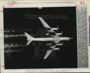 The Department of Defense released this photo in Washington, February 28, of what it identified as a Soviet long-range reconnaissance plane flying over a United States (U.S.) Navy task force southeast of the Azores on February 22. The department said the pictures was made from a U.S. Navy plane based on the Carrier Forrestal. Defense Secretary Robert McNamara told a Washington news conference that four Soviet planes flew over the Forrestal. United States Navy Photo. Airplanes. Russian. Science backup.