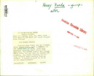 Henry Fonda, actor, Two Famous Fondas - Actress Jane Fonda and her father, actor Henry Fonda, tape a segment for the Today Show in 1979. They have recently finished their first film together, "On Golden Pond", but ailing Henry Fonda was not able to attend the premiere. Ms. Fonda recalls, I was very nervous about working with my father. I wanted so much to be up to his expectations.