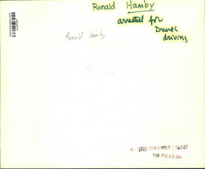 1984 Press Photo Ronald Hamby Arrested for Drunk Driving Holds Ticket