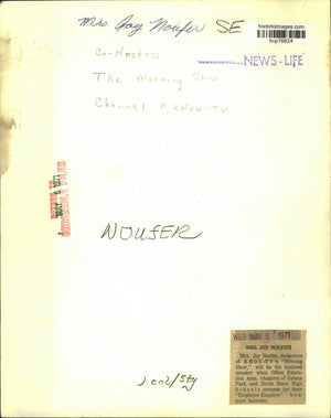 Mrs. Joy Noufer, co-hostess of KHOU-TVE™s "Morning Show," will be the featured speaker when Office Education Association chapters of Galena Park and North Shore High Schools convene for their "Employer-Employe" ban-quiet Saturday.