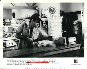 Chad Finletter works in his Uncle Wilbur's pizza parlor called Tomato-Killer Finletter's Pizza in "Return of the Killer Tomatoes," starring Anthony Starke, George Clooney, Karen Mistal and John Astin as Professor Gangrene, directed by John DeBello.
