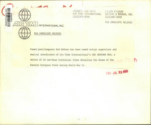 Famed poet/composer Rod McKuen has been named script supervisor and musical coordinator of Air Time international's The Unknown War, a series of 20 one-hour historical films detailing the drama of the Eastern European Front during World War II.