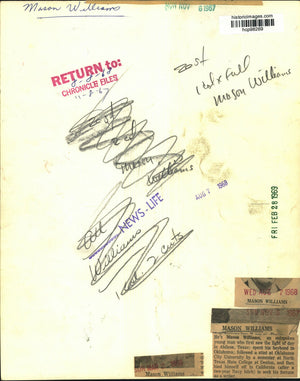 Mason Williams & Allan Blye. HeE™s Mason Williams, an outspoken young man who first saw the light of day in Abilene, Texas: spent his boyhood In Oklahoma; followed a stint at Oklahoma City University by a semester at North Texas State College at Denton, and then hied himself off to California (after a two-year Navy hitch) to seek his fortune as a writer.