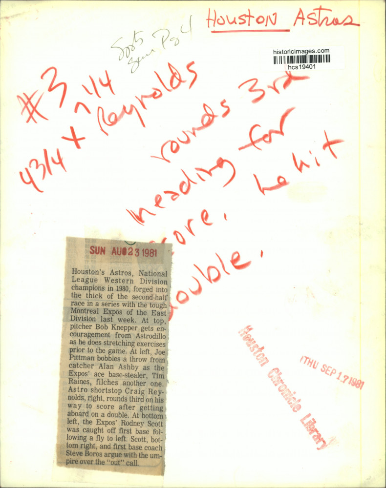 1981 Press Photo Houston Astros baseball shortstop Craig Reynolds rounds third