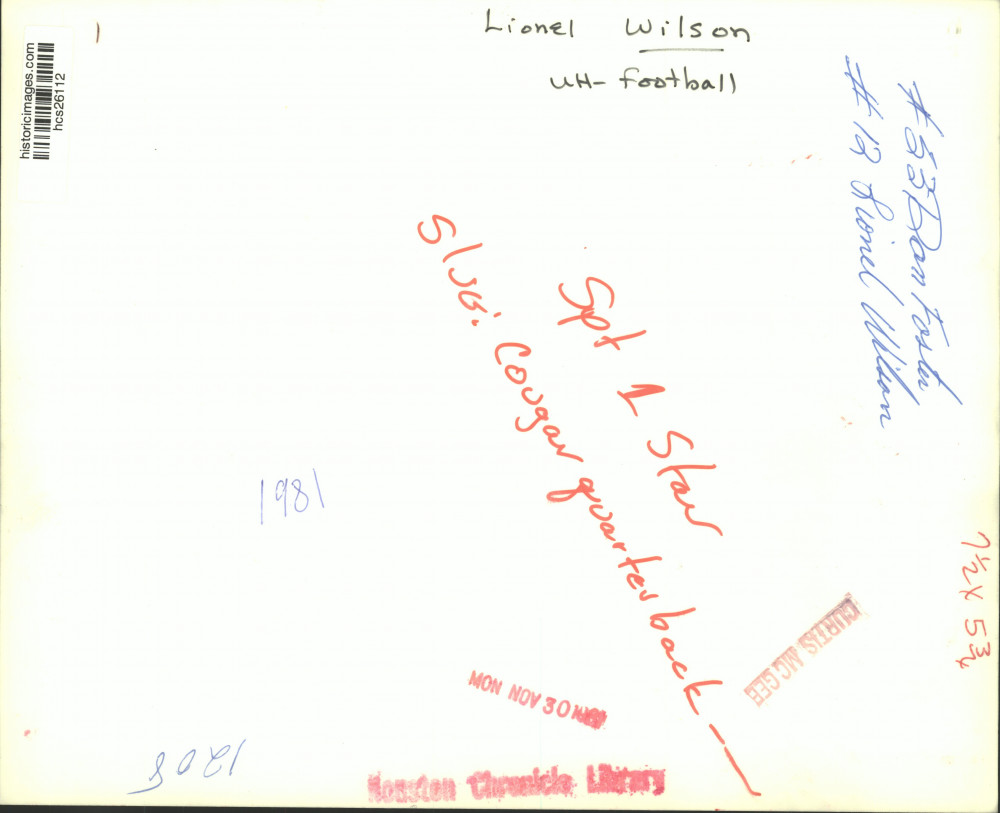 12 Lionel Wilson, University of Houston football; 553 Dan Foster Cougar quarterback