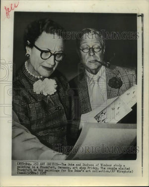 1957 Press Photo Duke & Duchess of Windsor study a painting in Frankfurt,Germany