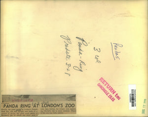 Pandas: Chi-Chi, the giant panda at London's Regent Park Zoo, sits bolt upright and looks at a picture of An-An, the giant male panda at Moscow's zoo to whom she'll pay a visit next week. Sam Horton, her keeper, was explaining Chi-Chi's trip to some students today. Object of the trip is baby pandas, which suggest bears are really related to raccoons.