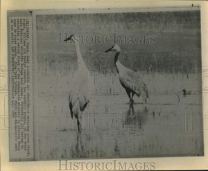 1975 Press Photo Whooping crane chick follows its foster parents at Idaho refuge