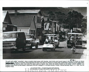 1988 Press Photo Golf Carts & Bicycles Share Street on Catalina Island.
