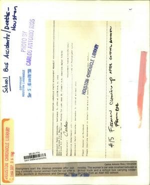 1990 Press Photo Firefighters check car and Alief school bus accident in Houston