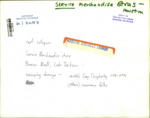 Service Merchandise stores - Houston. Roof collapse. Brazos Mall, Lake Jackson. Surveying damage - (middle) Jay Dougherty. (others - insurance folks).