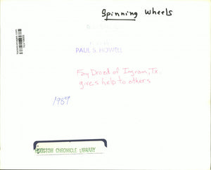 Fay Drozd of Ingram, Texas gives help to others. Spinning wheels.