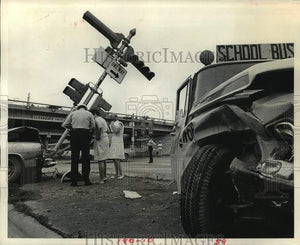 1970 Press Photo Houston wagon school bus and car collision on Irvington