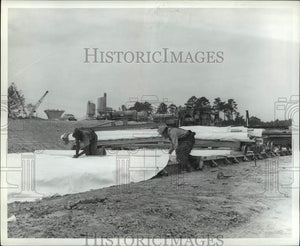 1962 Press Photo Construction workers on a Texas highway - hcx20877