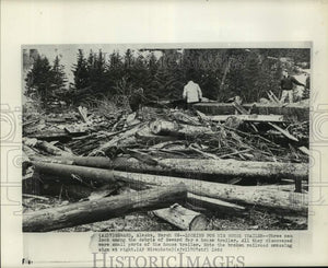 1964 Press Photo Men Look Among Debris For Trailer in Seward, Alaska After Quake