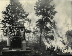Texas Forest Service - 1962 - Blistering blaze pushes close-in fire fighters - tractor (left) confines fire after alert (center)