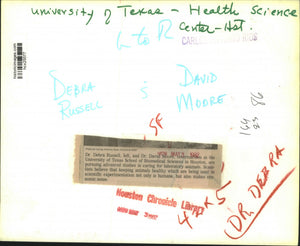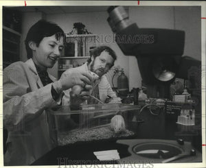 University of Texas - Health and Science Center - Houston - Dr. Debra Russell, left, and Dr. David Moore, veterinarians at the University of Texas School of Biomedical Sciences for Houston, are pursuing advanced studies in caring for laboratory animals. Scientists believe that keeping animals healthy which are being used for scientific experimentation not only humane, but also makes economic sense.
