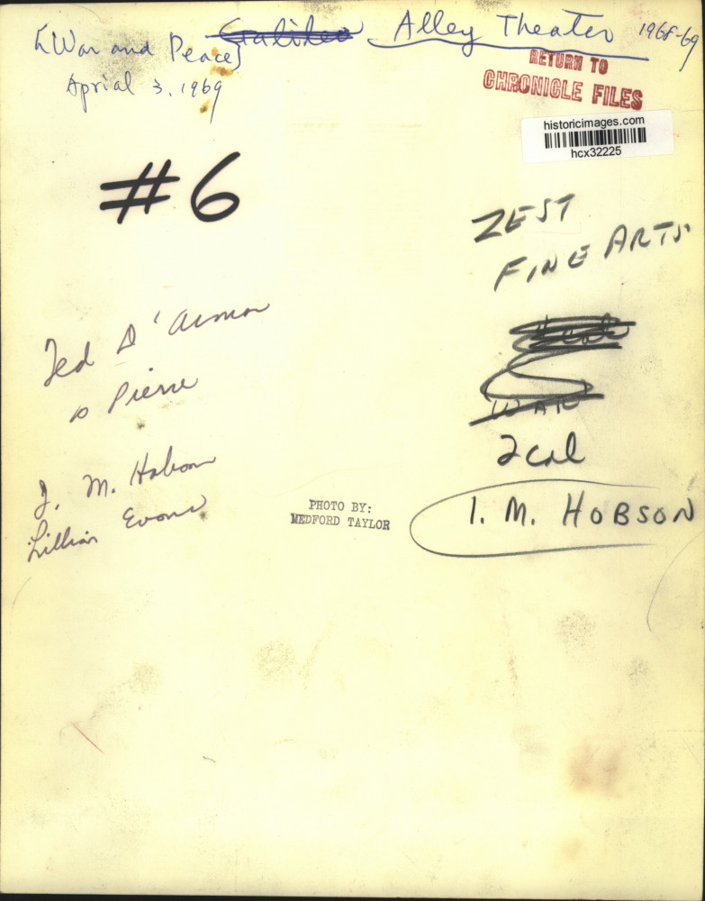 Scene from "War and Peace" at Nina Vance Alley Theater in Houston, Texas. Ted D'Armon as Pierce, J. M. Habron, Lillian Evans and I. M. Hobson.