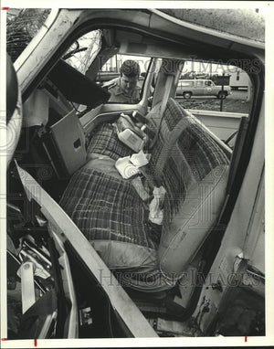 1985 Press Photo Texas Sheriff W. L. Hunton inspects truck after accident