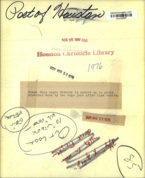 1976 Press Photo The Greek Ship Aegis Bravery at Port of Houston Grain Elevator