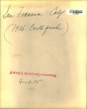 San Francisco: Smoke pours from the burning Call Building at Third and Market streets on April 18, 1906 as firemen stand by helplessly following the disastrous earthquake. The picture is from a glass plate negative found recently in the photo archives of the San Francisco police department and now the property of the San Francisco Public Library.