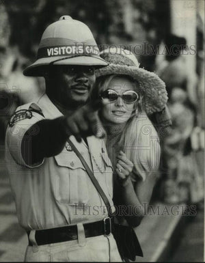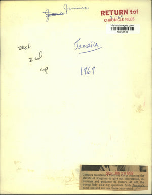 1969 Press Photo Lady Asks Courtesy Corp Questions on Kingston Streets, Jamaica
