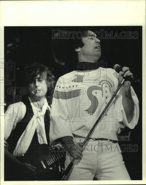 1985 Press Photo Rock band The Firm perform on stage - hcx42236