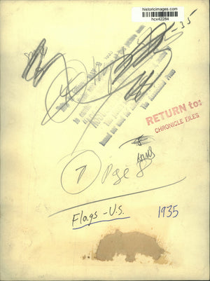 1935 Press Photo Military parade with American flag - hcx42284