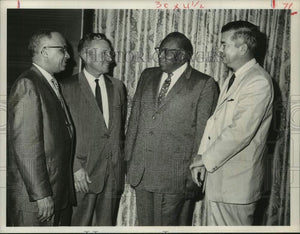 Three leaders of the United Negro College Fund discuss campaign plans with Mayor Lewis Cutrer, second from left. They are John Codwell, left, local chairman; John T. Jones, Jr., president of The Chronicle, general chairman; and Hobart Taylor, treasurer. The local goal is $35,000; the national, $2,000,000. The fund drive is to benefit 33 privately-operated colleges, four of them in Texas. (United Negro College Fund)