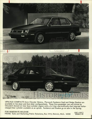 1986 Press Photo Compacts from Chrysler Motors, Plymouth Sundance & Dodge Shadow