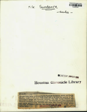 Upscale compacts from Chrysler Motors, Plymouth Sundance (top) and Dodge Shadow are available in two-door and four-door configurations. These five-passenger cars are driven by Chrysler's famed 2.2 liter four-cylinder engine with a 2.2 liter electronically-fuel injected turbo-charged four cylinder available as an option. Sundance and Shadow go on sale in the Spring. Sundance - Auto