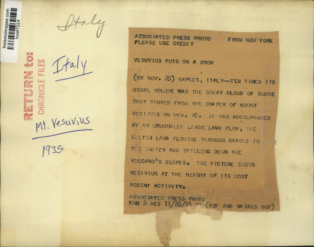 1935 Press Photo Mount Vesuvius near Naples, Italy erupts with a large lava flow