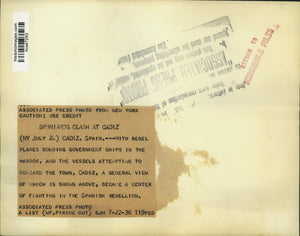 Cadiz, Spain - With rebel planes bombing government ships in the harbor, and the vessels attempting to bombard the town, Cadiz, a general view of which is shown above, became a center of fighting in the Spanish rebellion.