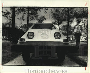 1981 Press Photo Steve Hanrahan views his electric car at his home. - hcx49946