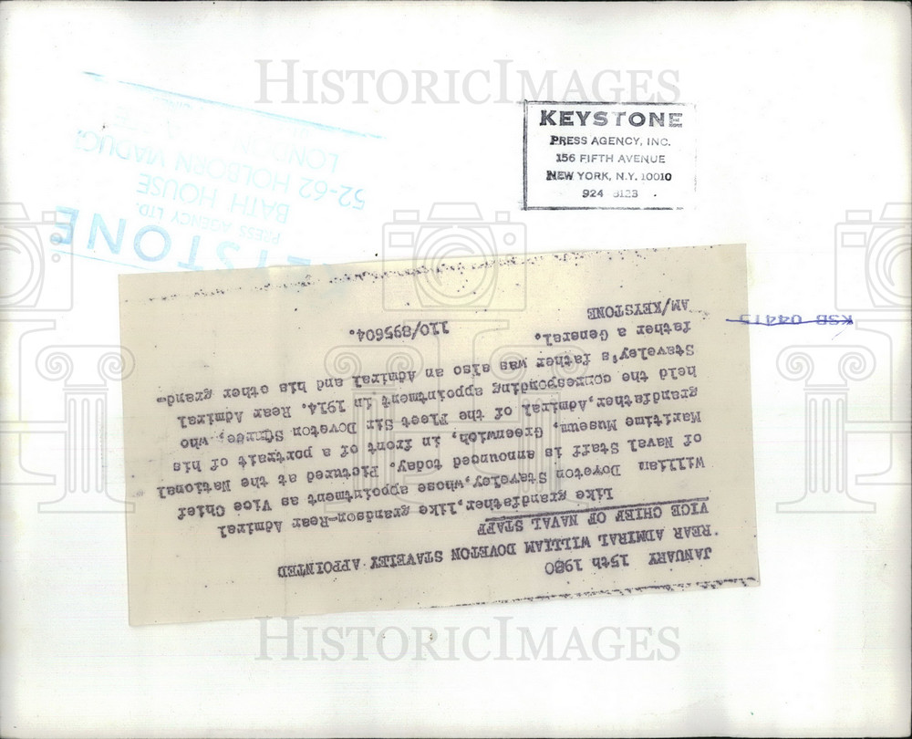 1980 Press Photo Rear Admiral William Doveston Staveley - KSB04017