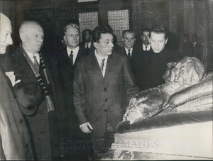 Historical Visit Pope Paul VI met the President of the Presidium of the USHR Nicolai Podgorni. Photo shows President Nicolai Podgorny staying in front of the statue of Pope Leo XIII, during the visit at the Vatican Museum.