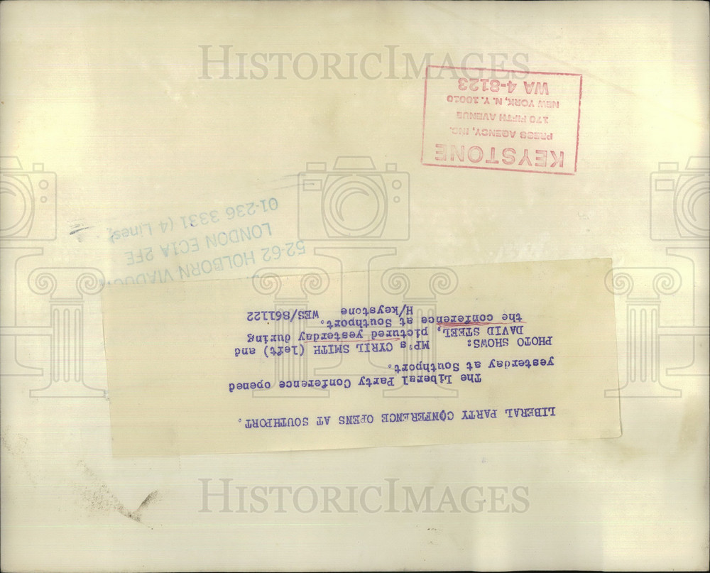 Liberal Party Conference Opens at Southport. The Liberal Party Conference opened yesterday at Southport. Photo Shows: MP's Cyril Smith (left) and David Ste