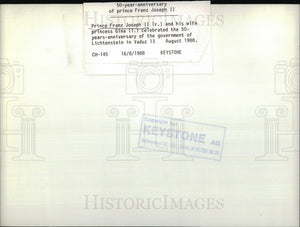 50 year anniversary of Prince Franz Joseph II Prince Franz Joseph II (r.) and his wife princess Gina (l.) celebrated the 50 year anniversary of the government of Lichtenstein in Vaduz 13 August 1988.