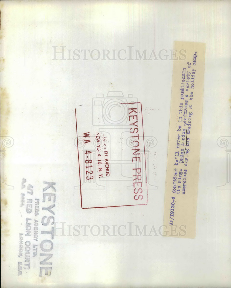 Confident he'll never be in this position in the ring. Brian London performs a variety of exercises during his training at the holiday camp.