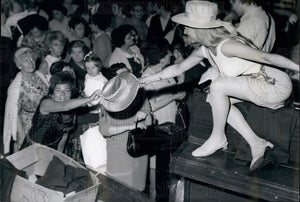 1967 Press Photo Crowd of women for Sale of cut-price dresses and suits