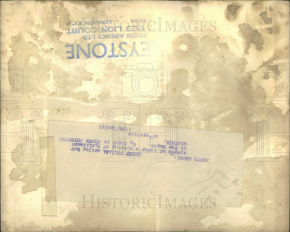 Photo Shows: Queen Juliana making her speech at today’s opening of Parliament at The Hague. On right is Crown Princess Beatrix.