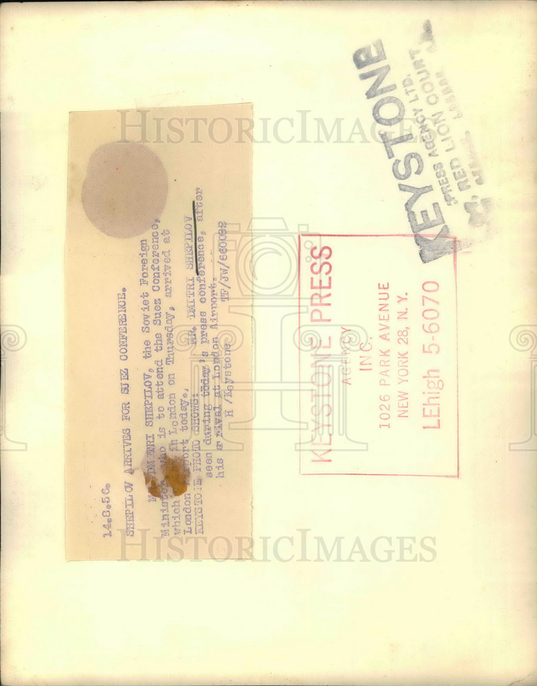 Shepilov Arrives For Suez Conference: Mr. Dmitri Shepilov, the Soviet Foreign Minister, who is to attend the Suez Conference, which occurs in London o