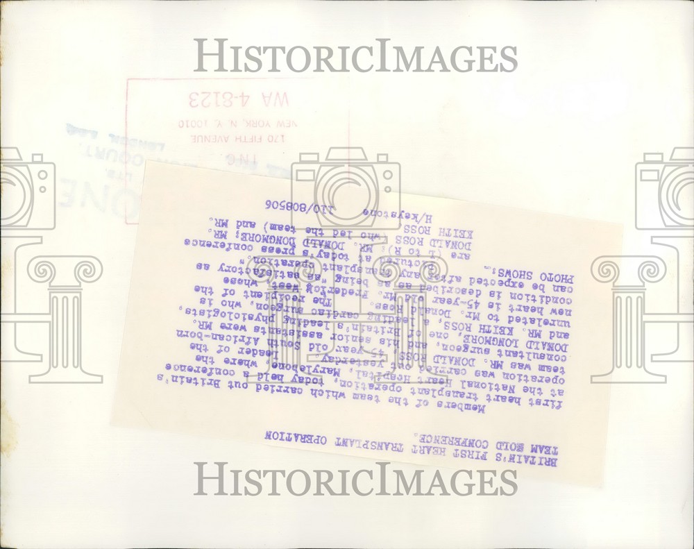 Press Photo Britain First Heart Transplant Operation Team Britain - KSB45051