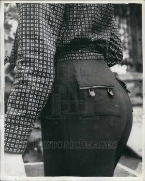 Autumn Fashions From Paris The Penroche and Mac Douglas Autumn fashion collections are already on show in Paris. Photo Shows: An unusual hip pocket design in tight slacks from the collection.