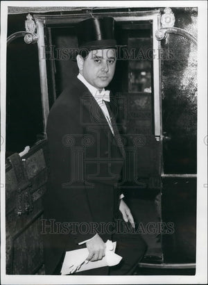 NEW CUBAN AMBASSADOR PRESENTS CREDENTIALS. Senor Bergio Rojas Santamarina, the new Cuban Ambassador to London this morning presented his credentials to H.M. The Queen. Keystone Photo Shows:- Senor Sergio Rojas Santamarina when he left Claridges for the Palace this morning.