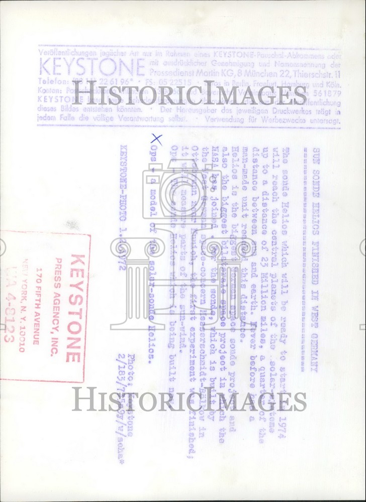 1972 Press Photo Sun Sonde Helios built in West Germany