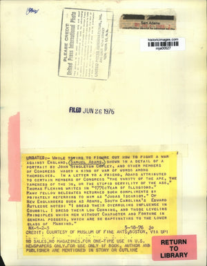 While trying to figure out how to fight a war against England, Samuel Adams, shown in a detail of a portrait by John Singelton Copley, and other members of Congress waged a kind of war of words among themselves. In a letter to a friend, Adams attributed to certain members of Congress "the vanity of the ape, the tameness of the ox, or the stupid servility of the ass," Thomas Fleming writes in "1776: Year of Illusions." Many fellow delegates returned such compliments by privately referring to him as "Judas Iscariot." Of New Englanders such as Adams, South Carolina's Edward Rutledge noted: "I dread their overruling influence in Council. I dread their low cunning, and those leveling principles which men without character and fortune in general possess, which are so captivating to the lower class of mankind."