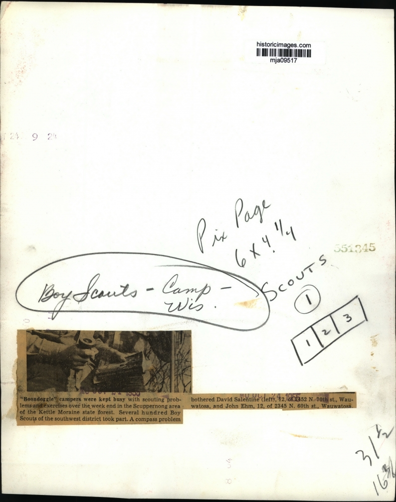 Boondoggle campers were kept busy with scouting problems and exercises over the weekend in the Scuppernong area of the Kettle Moraine state forest. Several hundred Boy Scouts of the southwest district took part. A compass problem bothered David Salentine,