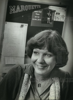 1979 Press Photo Betsy Bjalobok is the first woman to become sports information