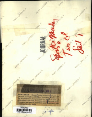 Happy Crew - Skipper Doug Armstrong (right) and his crew, sailing their 19 1/2 foot sloop Meg, Sunday won the Moutte class championship in a series of races off Milwaukee Yacht club. Crewmen were Mike McCarthy, who never had been in a sailboat until Wednesday, and Armstrong's wife, Anne